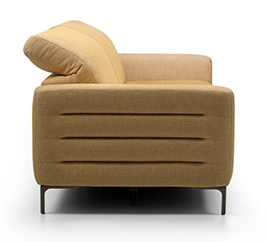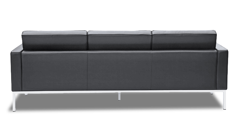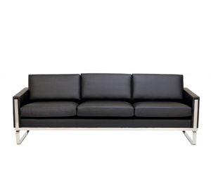 This retro style sofa has square edges with stainless steel feet and trim, and embodies Wegners ideology.